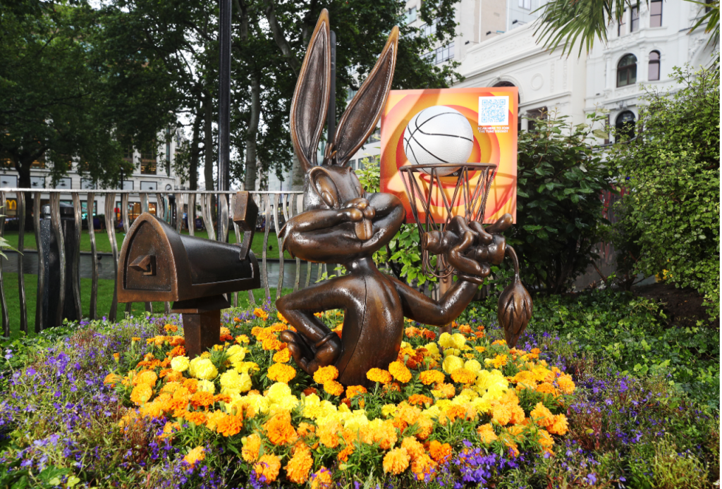 A statue of Bugs Bunny in Leicester Square has been brought to life with a shiny silver...